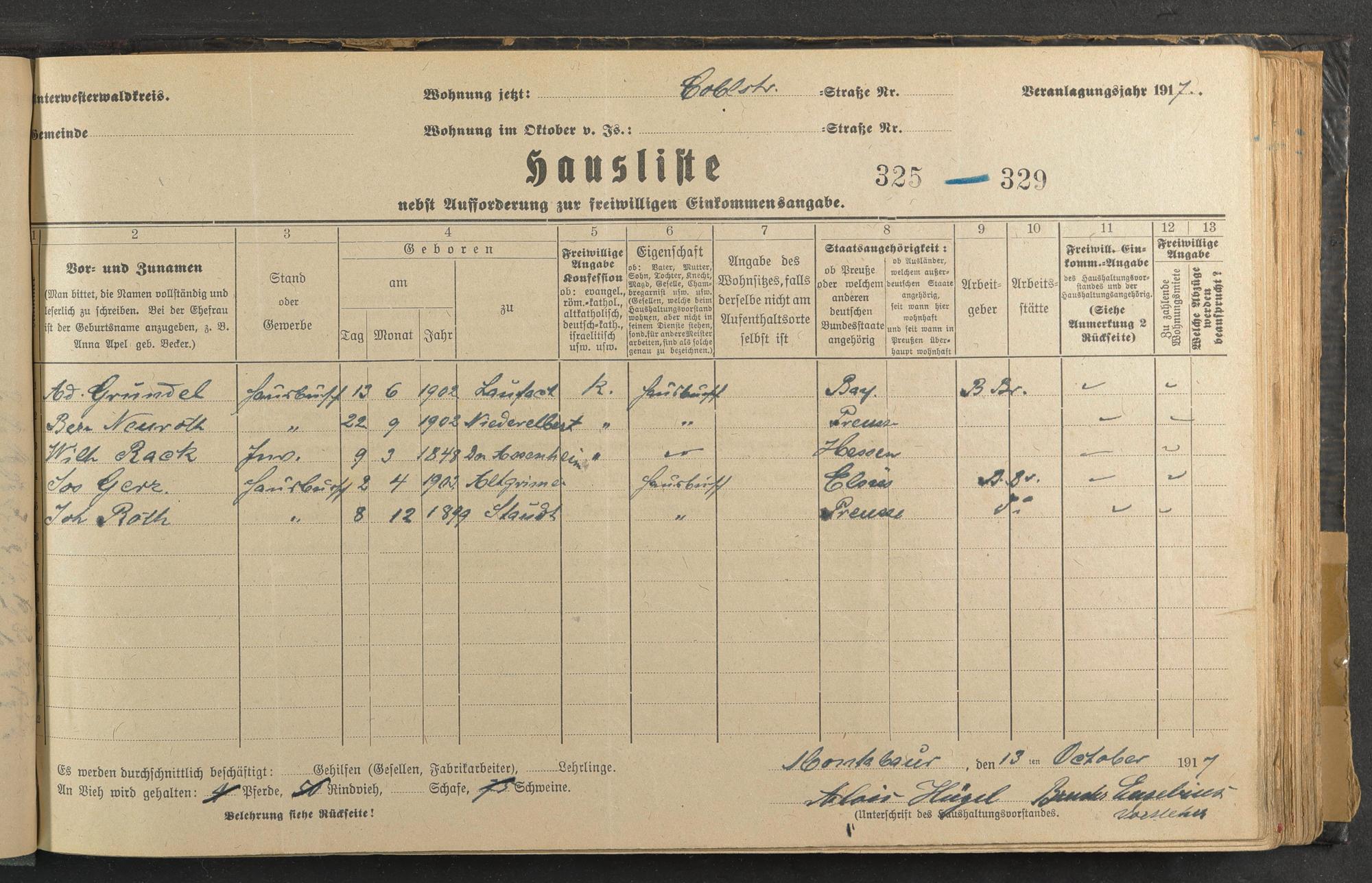 Haushaltsliste 1917/18, Coblenzer Straße bis Judengasse