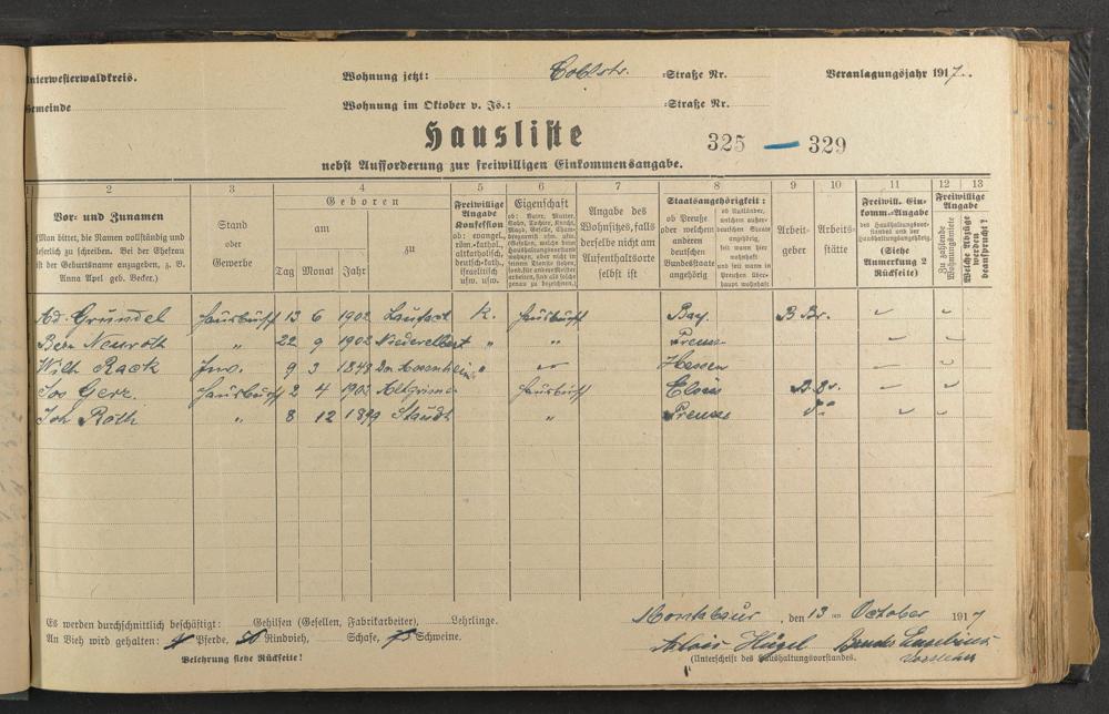 Haushaltsliste 1917/18, Kaiserstraße bis Markt
