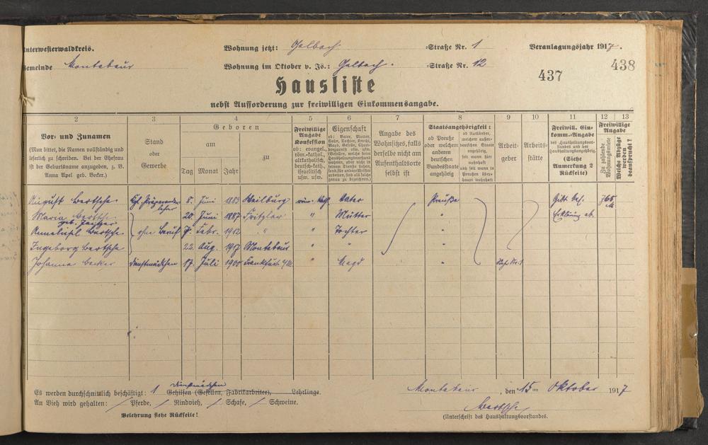 Haushaltsliste 1917-1918, Band I., Abteilung 4, A 286