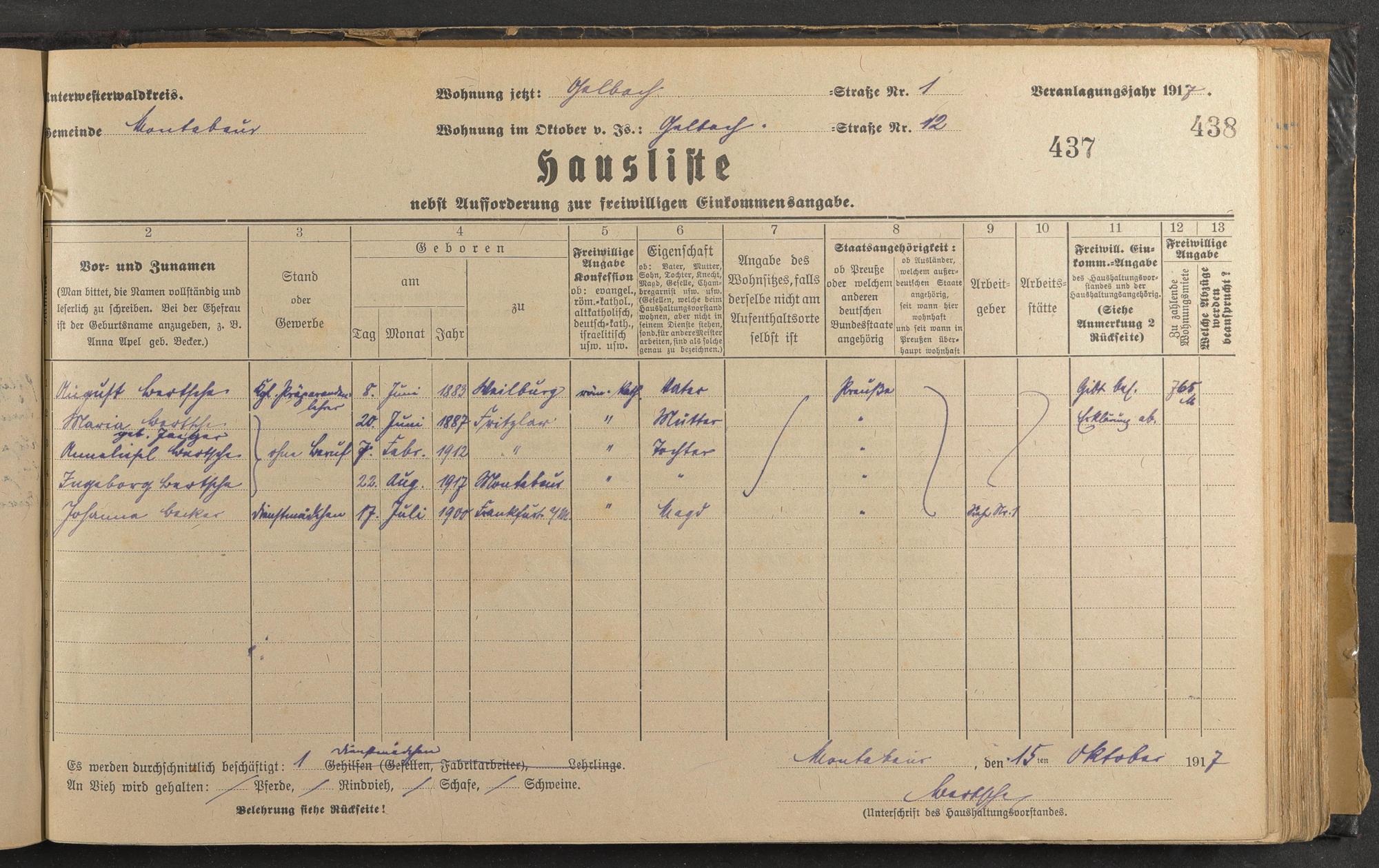 Haushaltsliste 1917/18, Kaiserstraße bis Markt