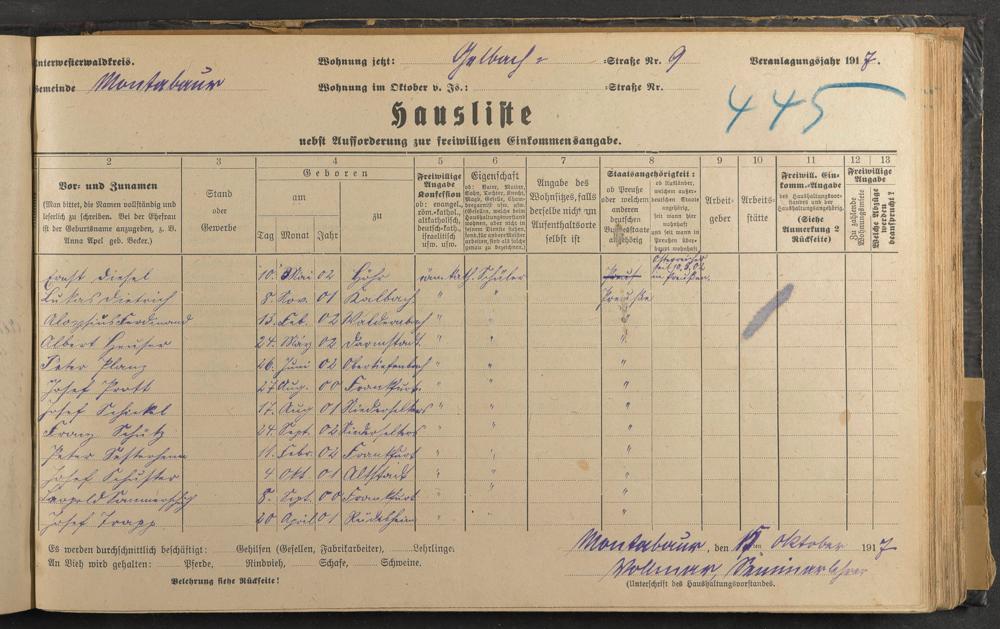Diesel, Ernst Dietrich, Lukas Ferdinand, Aloysius Heuser, Albert Planz [?], Peter Prott, Josef Schickel, Josef Schütz, Franz Sesterhenn, Peter Schuster, Josef Sommerschuh, Leopold Trapp, Josef
