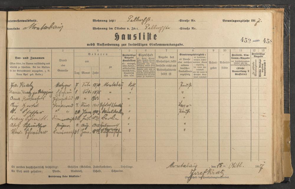 Kratz, Josef Kratz, Maria geb. Schepping Hertel, Aug. Scheffer, [...] Schmitt, Franz Schnädter, Adolf Schneider, Vinc.