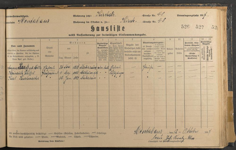 Haushaltsliste 1917/18, Kaiserstraße bis Markt