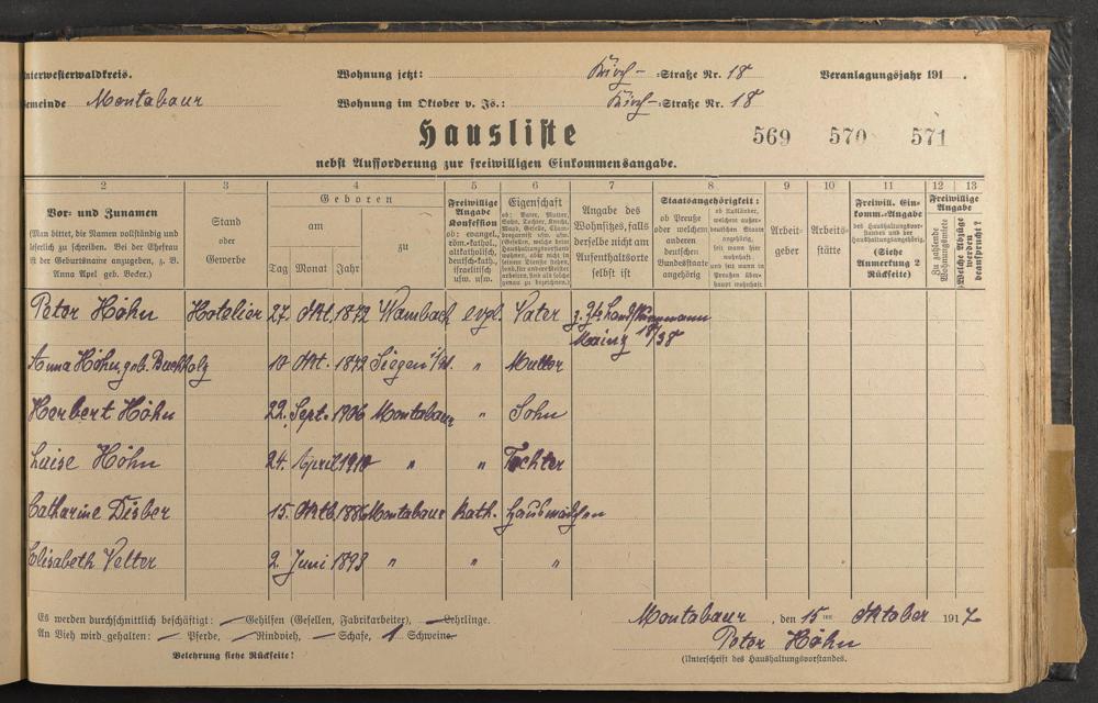 Höhn, Peter [Hohn] Höhn, Anna geb. Buchholz [Hohn] Höhn, Herbert Höhn, Luise Disper, Katharina Vetter, Elisabeth