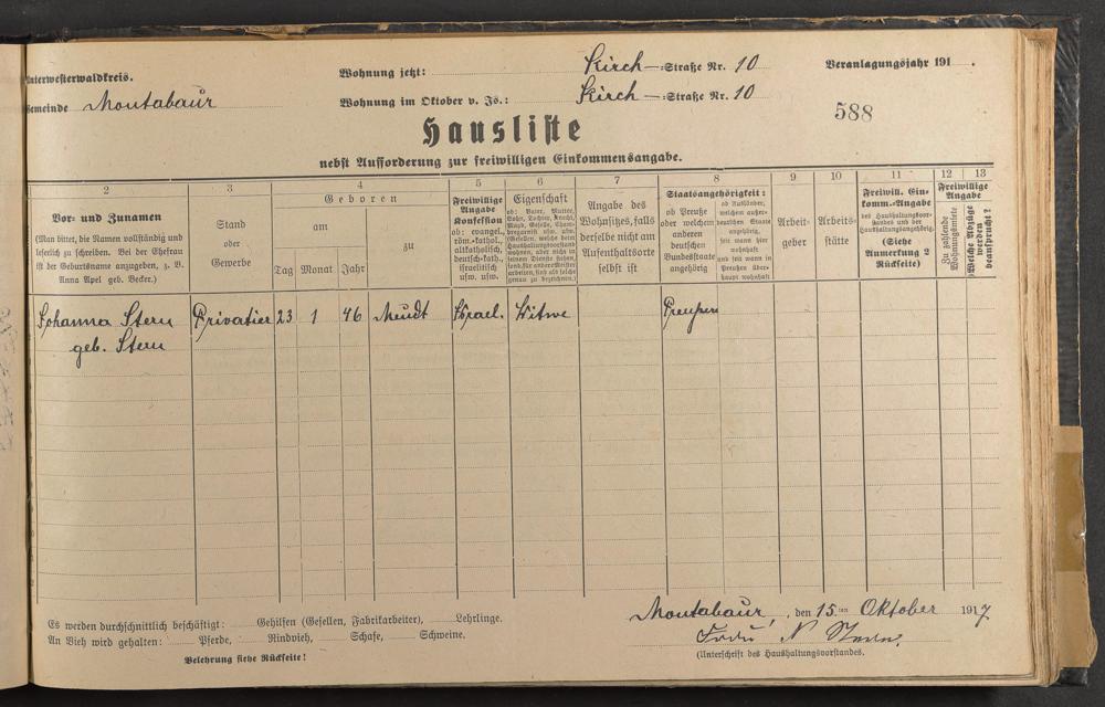 Haushaltsliste 1917/18, Coblenzer Straße bis Judengasse