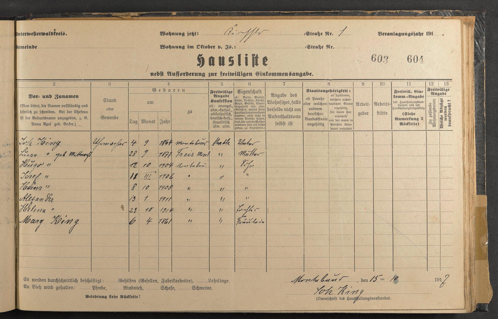 King, Johann King, Luise geb. Mittnacht [?] King, Hugo King, Joseph King, Heinr. King, Alexander King, Helena King, Margaretha