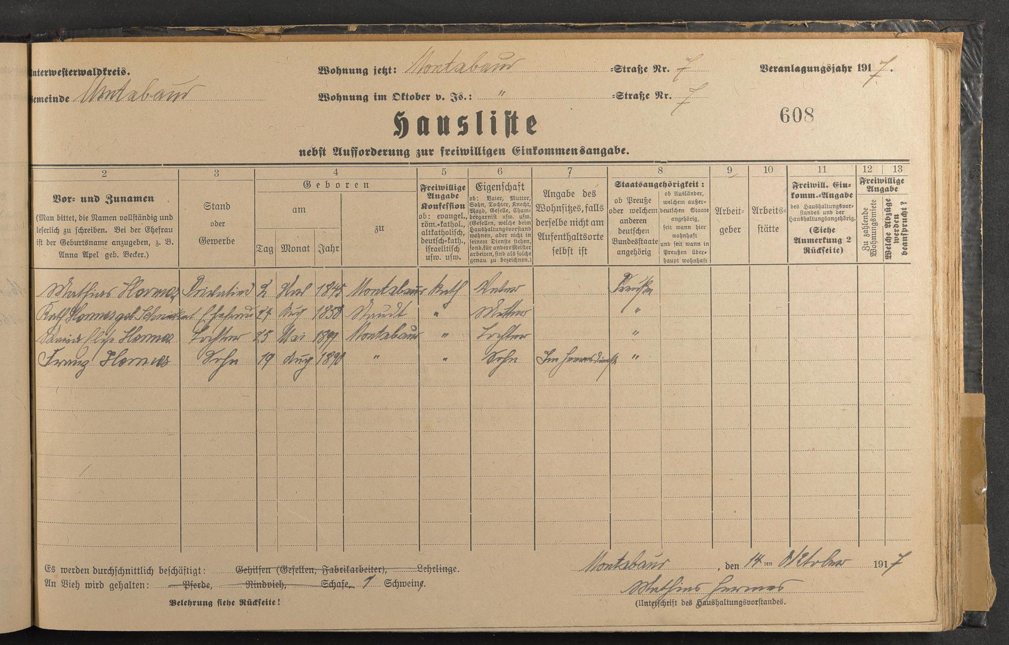Haushaltsliste 1917-1918, Band I., Abteilung 4, A 286