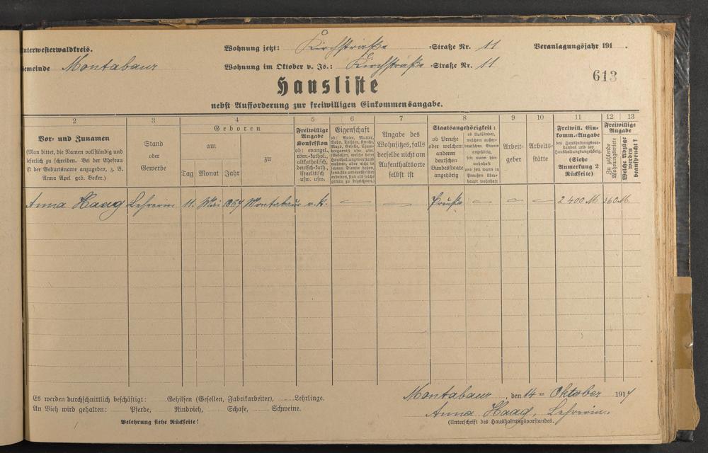 Haushaltsliste 1917/18, Coblenzer Straße bis Judengasse
