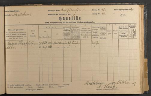 Haushaltsliste 1917/18, Kaiserstraße bis Markt