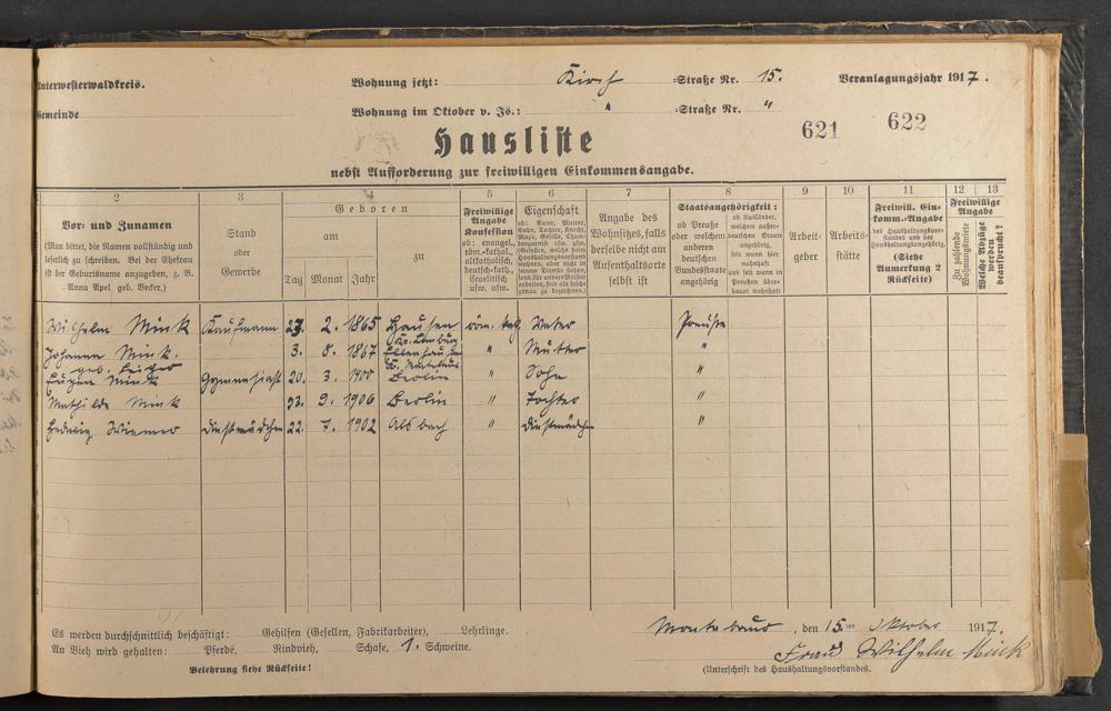 Haushaltsliste 1917/18, Kaiserstraße bis Markt