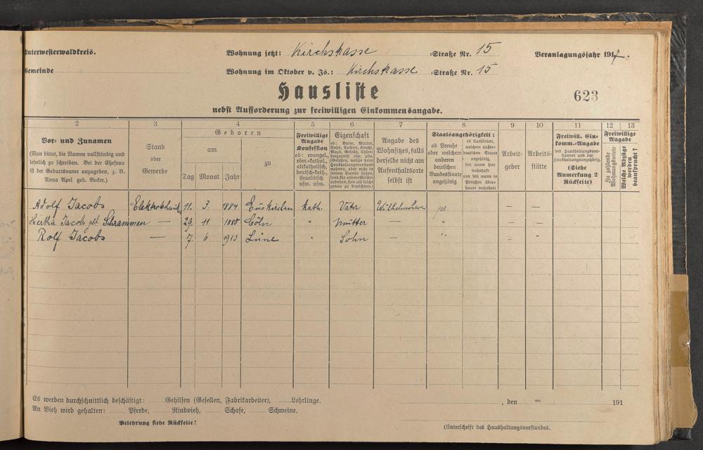 Haushaltsliste 1917/18, Kaiserstraße bis Markt