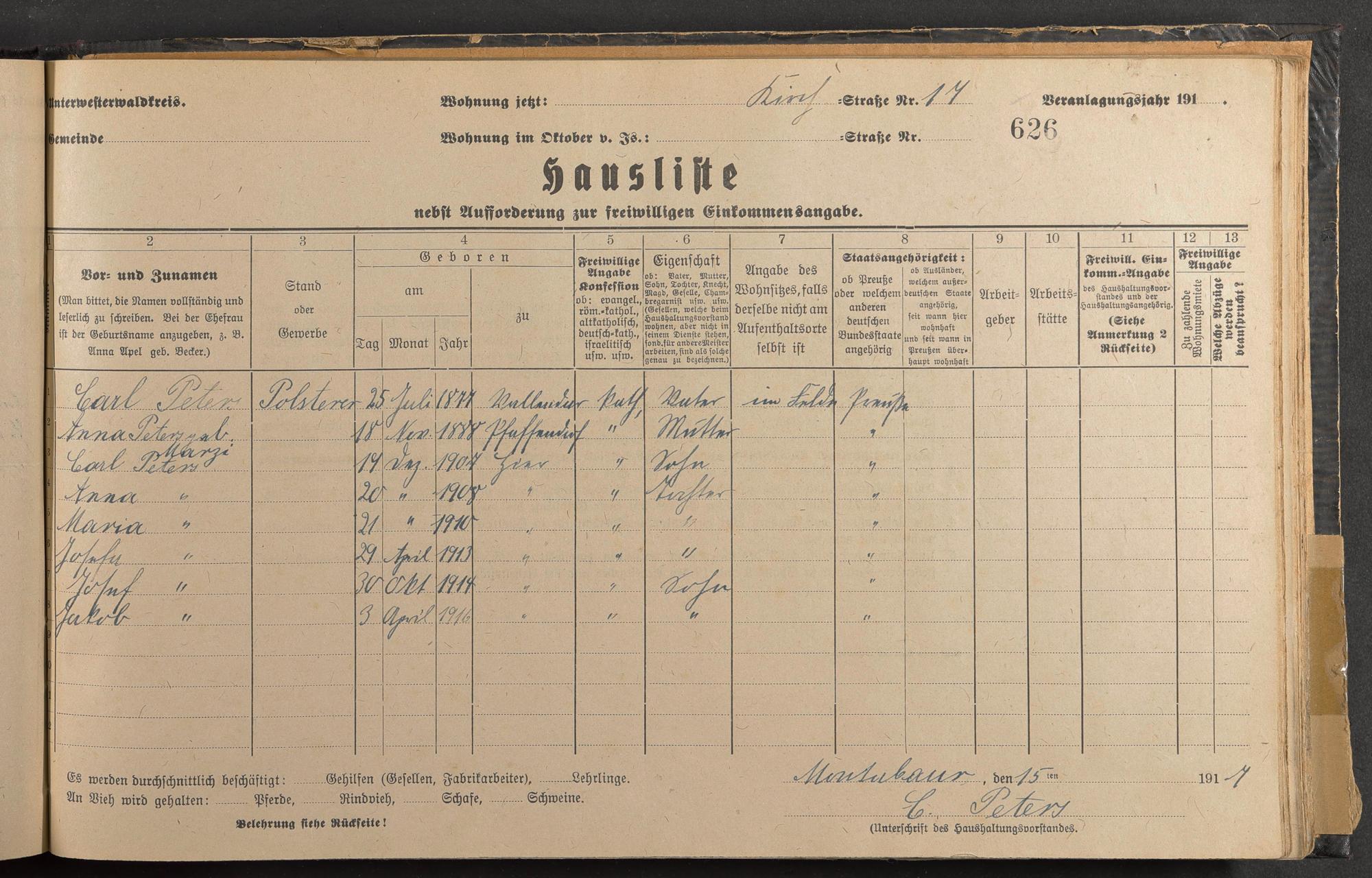Peters, Carl Peters, Anna geb. Marzi Peters, Karl Peters, Anna Peters, Maria Peters, Josefa Peters, Josef Peters, Willy