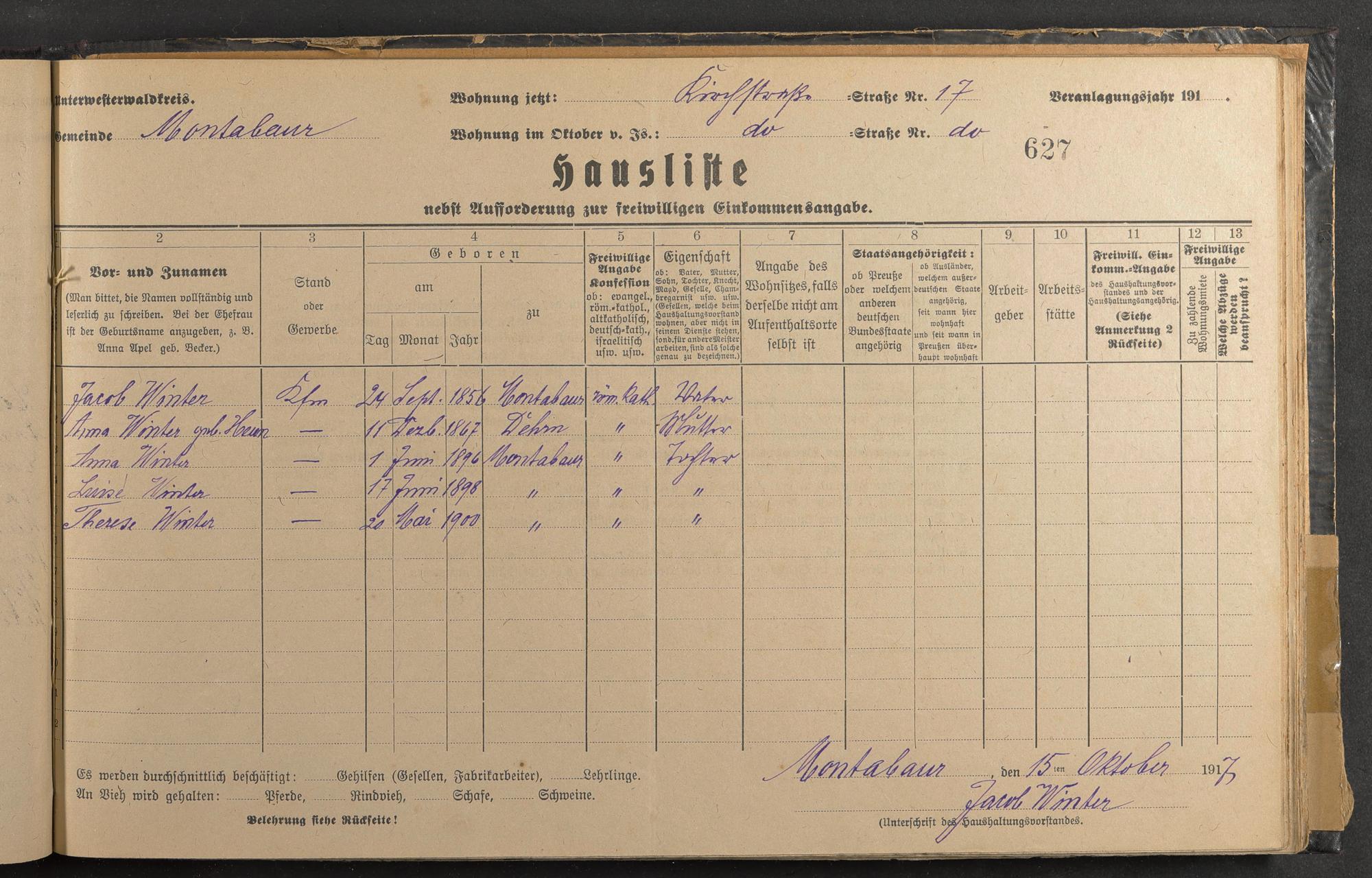 Haushaltsliste 1917/18, Kaiserstraße bis Markt