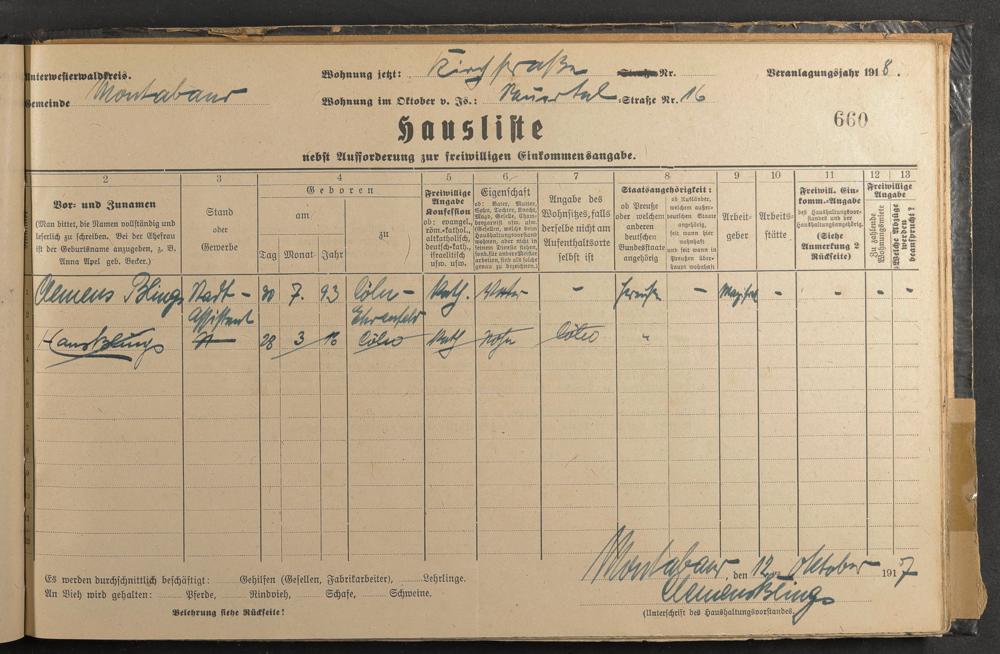 Haushaltsliste 1917/18, Kaiserstraße bis Markt