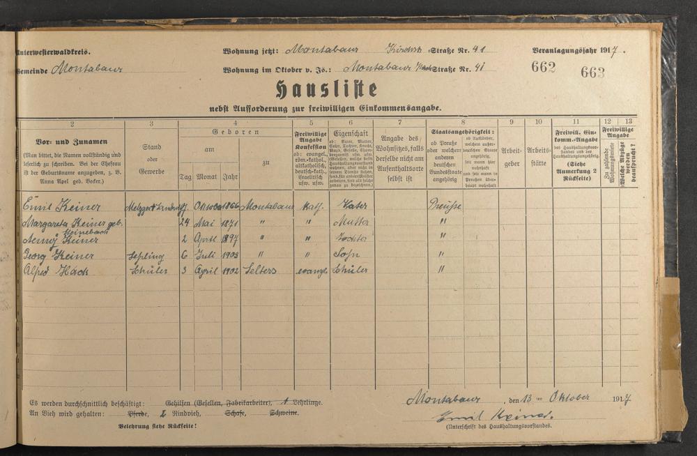 Haushaltsliste 1917/18, Kaiserstraße bis Markt