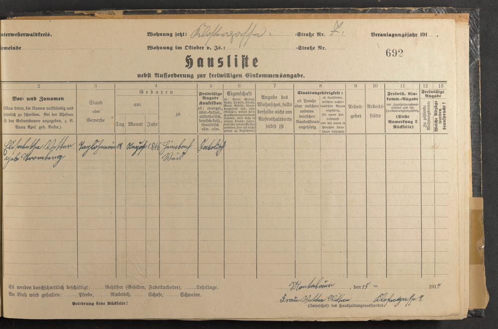 Haushaltsliste 1917/18, Kaiserstraße bis Markt