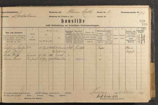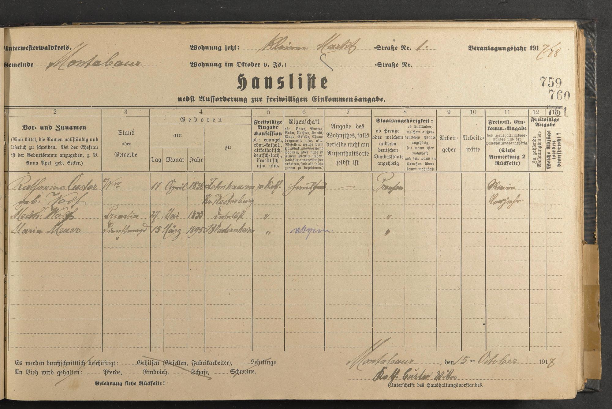 Haushaltsliste 1917/18, Kaiserstraße bis Markt