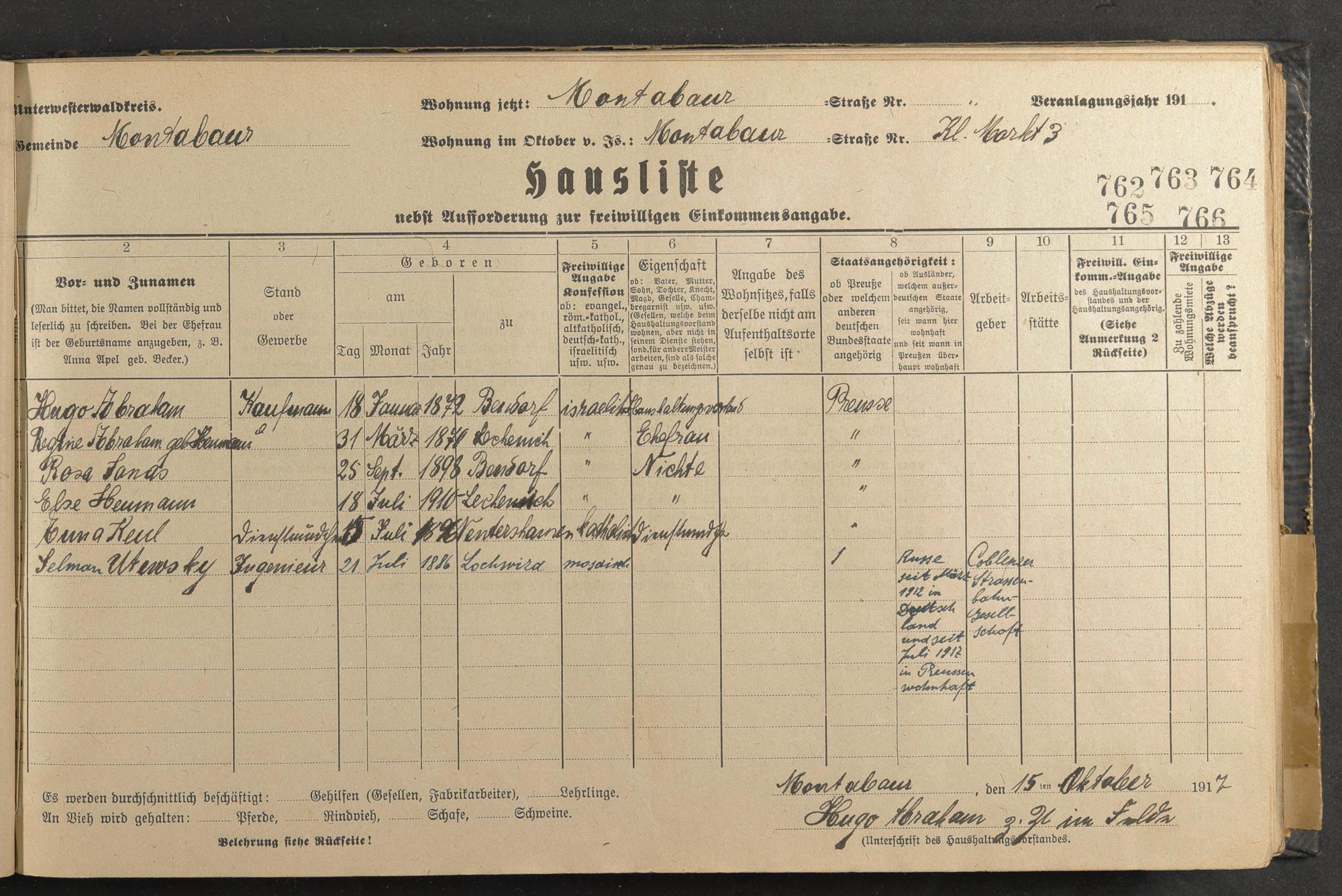 Abraham, Hugo Abraham, Regine geb. Heumann [Heimann] Jonas, Rosa Heumann, Else Keul, Anna Utewsky, Selman