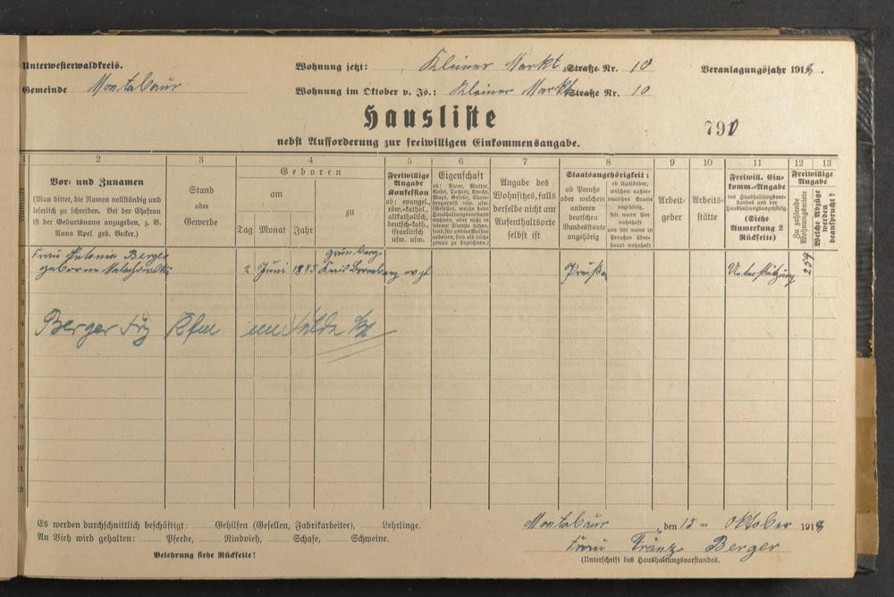 Haushaltsliste 1917/18, Kaiserstraße bis Markt