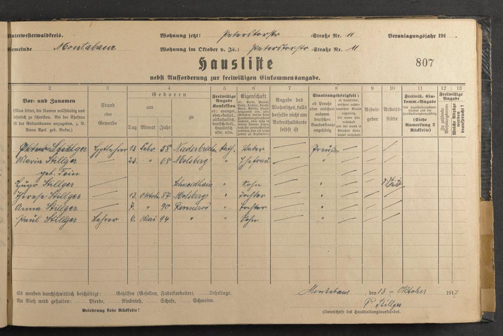 Stillger, Peter Stillger, Maria Magdal. geb. Fein Stillger, Jakob Hugo Stillger, Maria Margarete Theresia Stillger, Anna Amalia Stillger, Paul Isid.