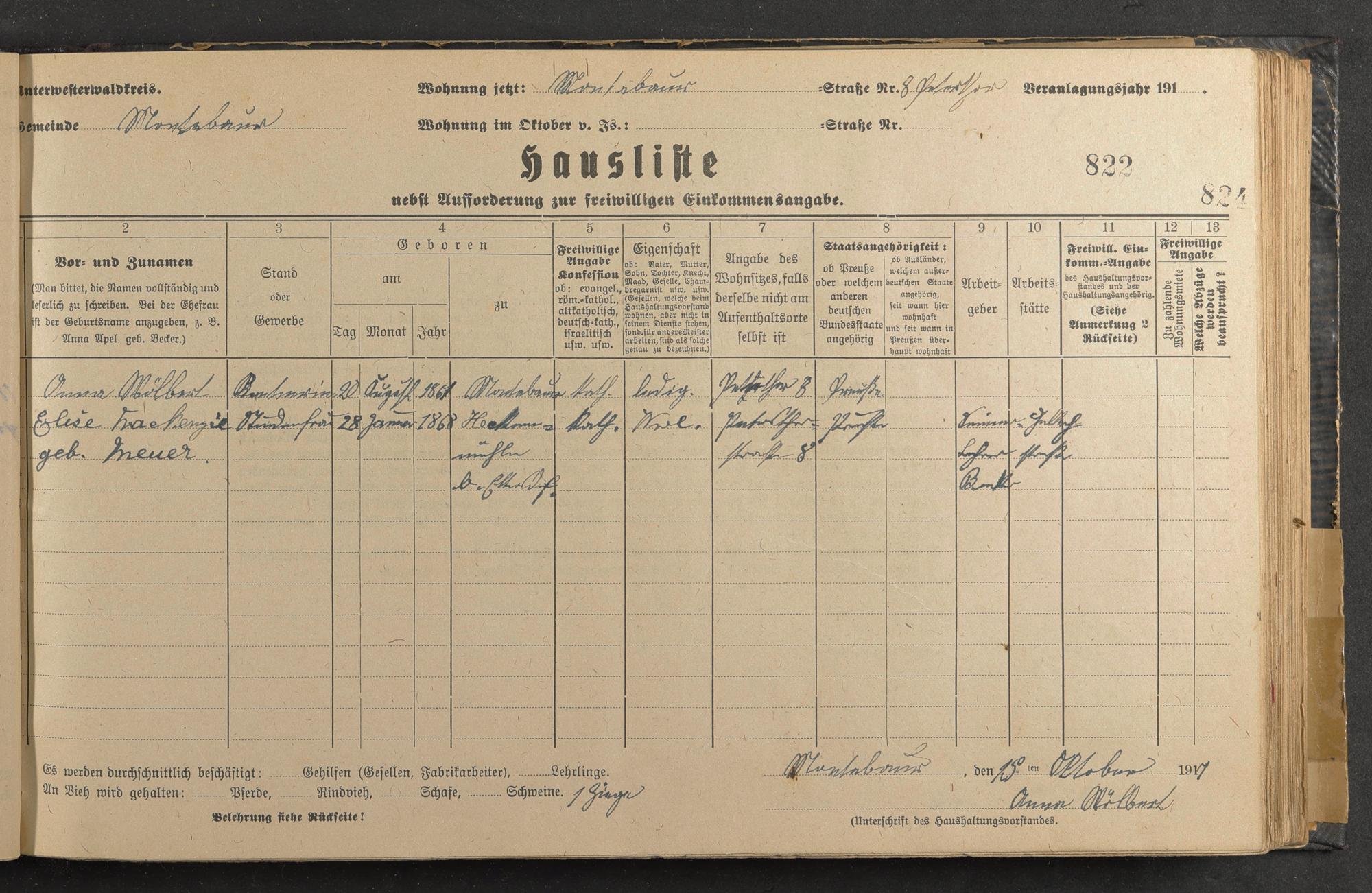 Haushaltsliste 1917-1918, Band II., Abteilung 4, A 287