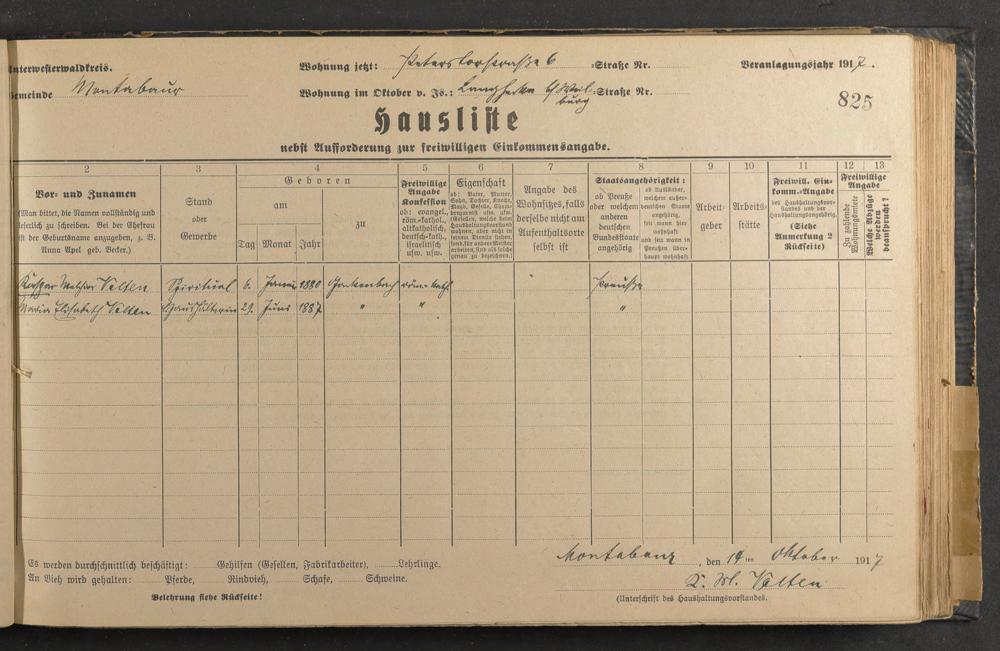 Haushaltsliste 1917/18, Sauertalstraße bis Werbhausgasse sowie Mühlen