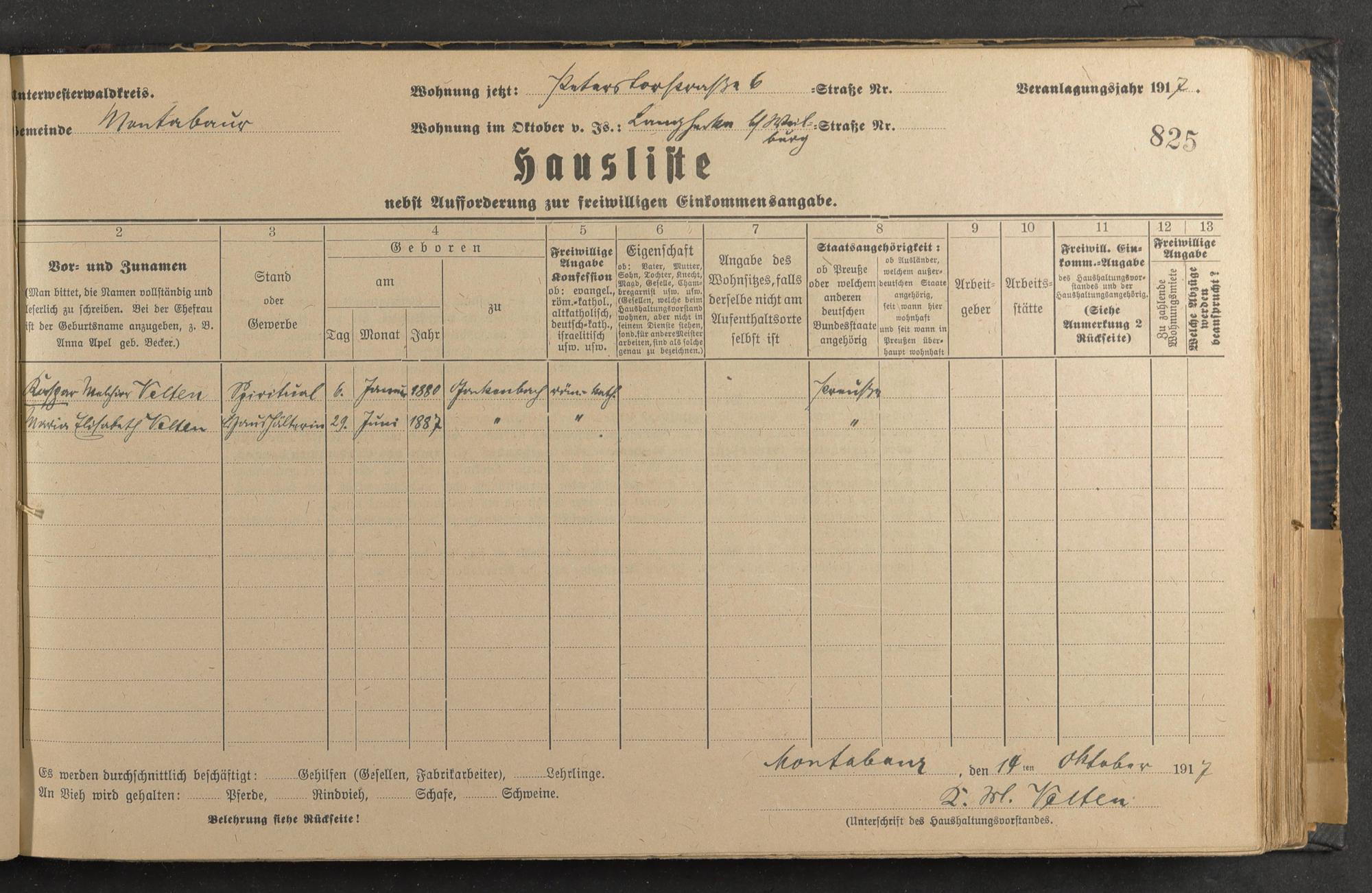 Haushaltsliste 1917-1918, Band II., Abteilung 4, A 287