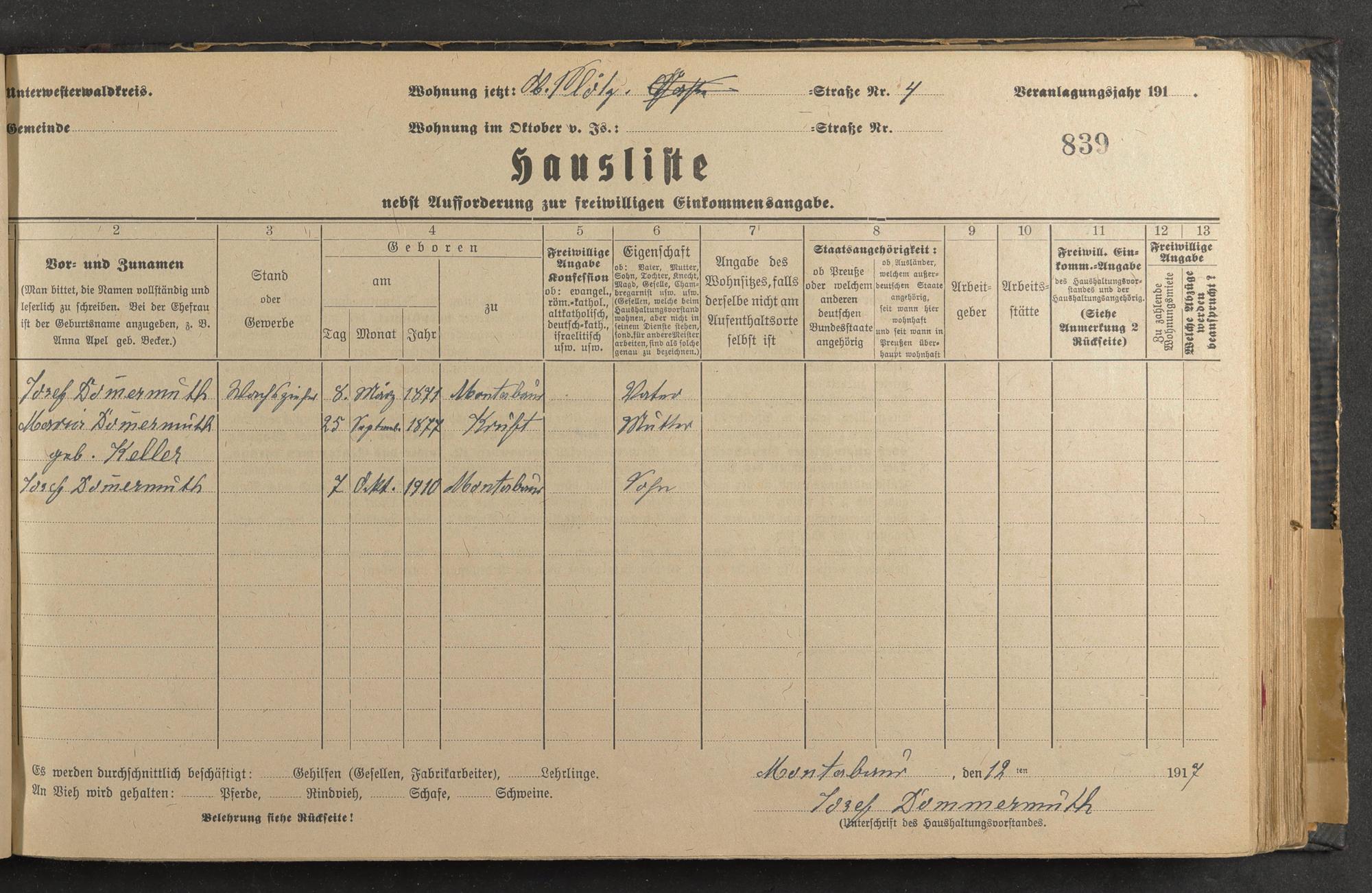 Haushaltsliste 1917-1918, Band II., Abteilung 4, A 287