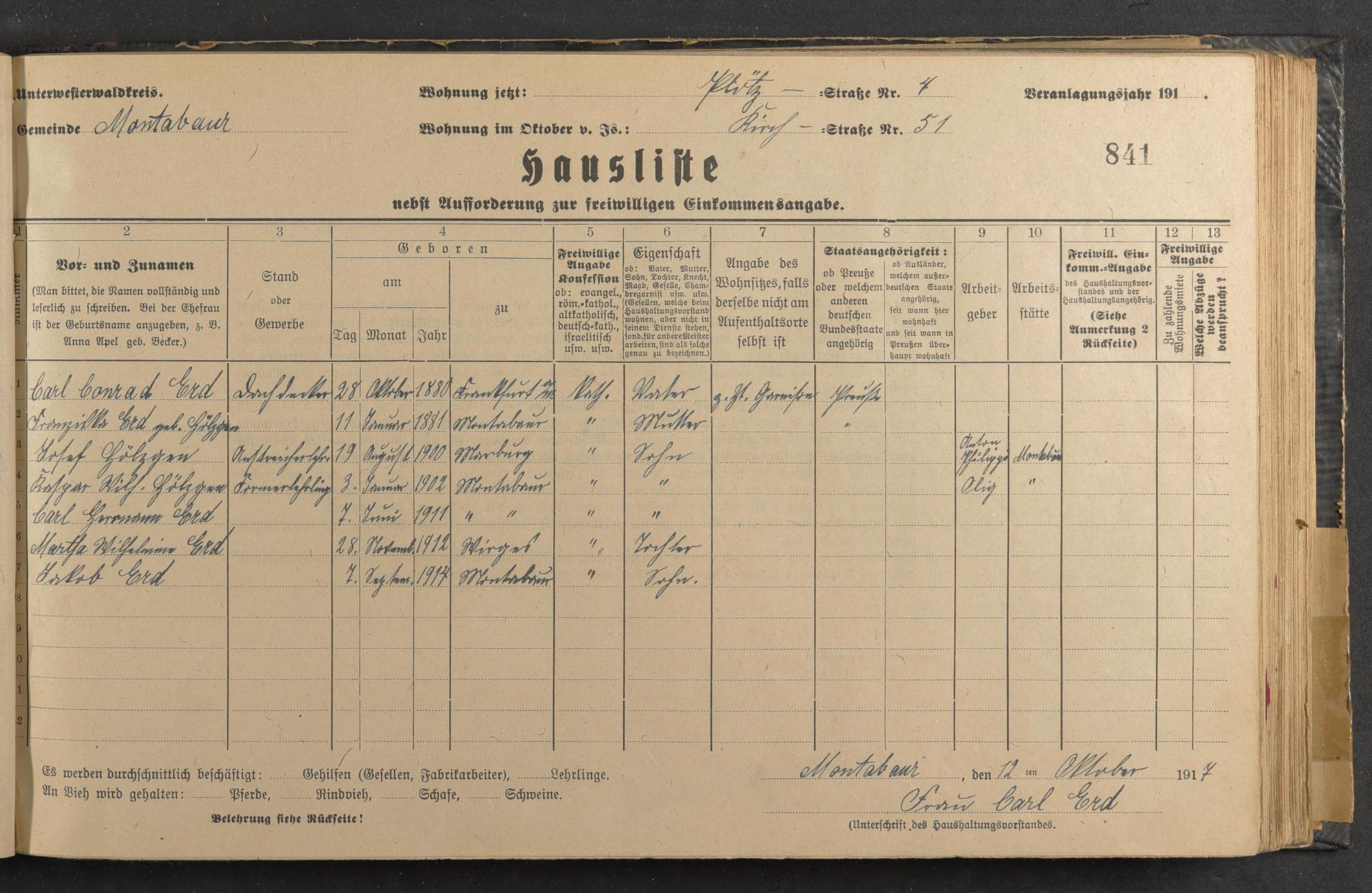 Erd, Carl Conrad Erd, Franziska, geb. Hölzgen Hölzgen, Josef Hölzgen, Caspar Erd, Carl Erd, Marta Erd, Jakob