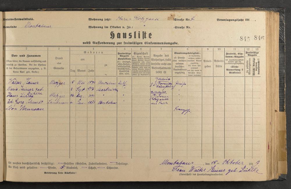 Haushaltsliste 1917/18, Sauertalstraße bis Werbhausgasse sowie Mühlen