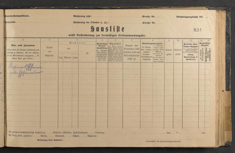 Haushaltsliste 1917-1918, Band II., Abteilung 4, A 287
