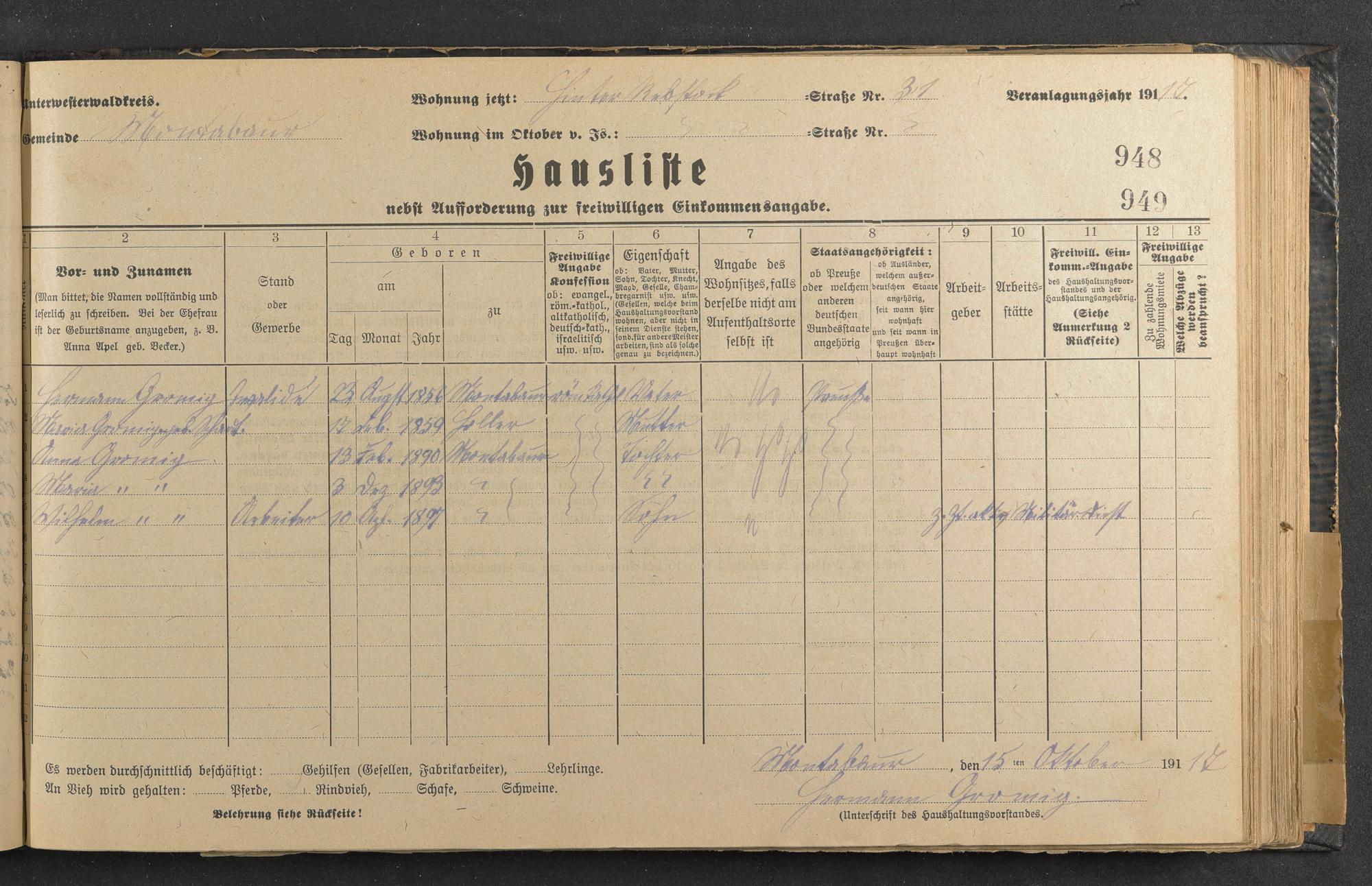 Haushaltsliste 1917-1918, Band II., Abteilung 4, A 287