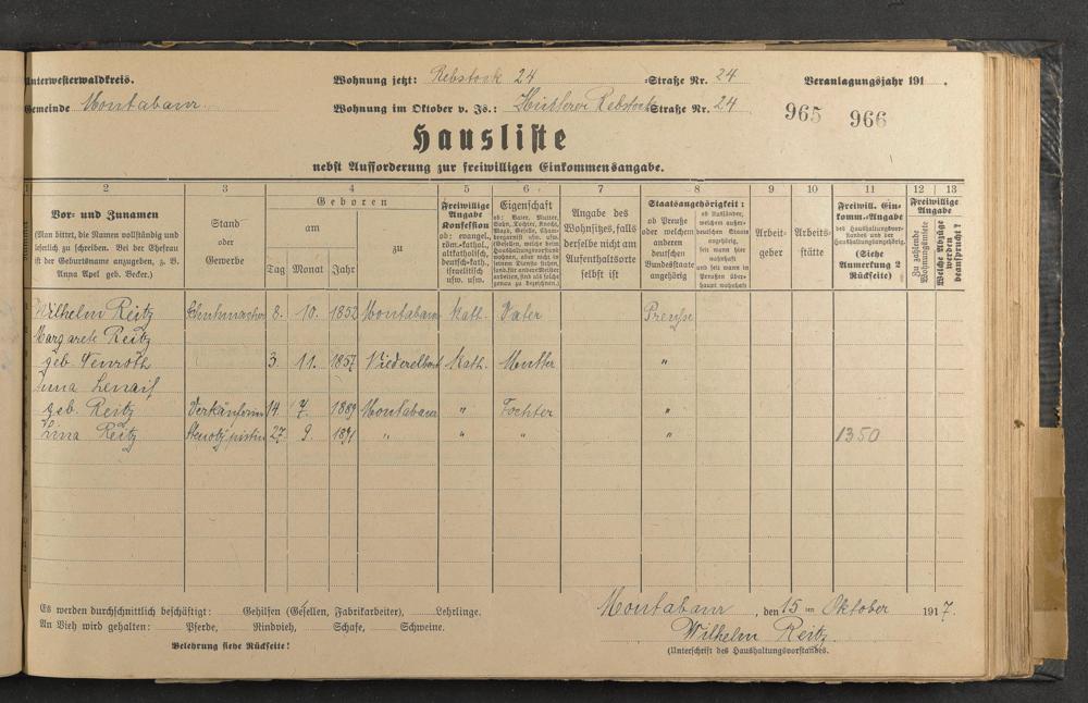 Haushaltsliste 1917-1918, Band II., Abteilung 4, A 287
