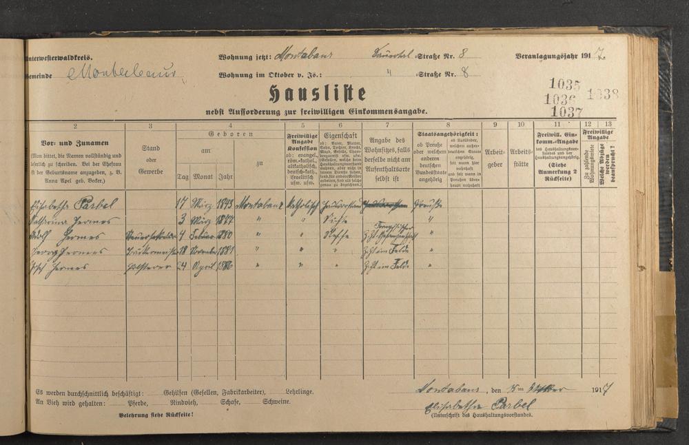 Haushaltsliste 1917/18, Sauertalstraße bis Werbhausgasse sowie Mühlen