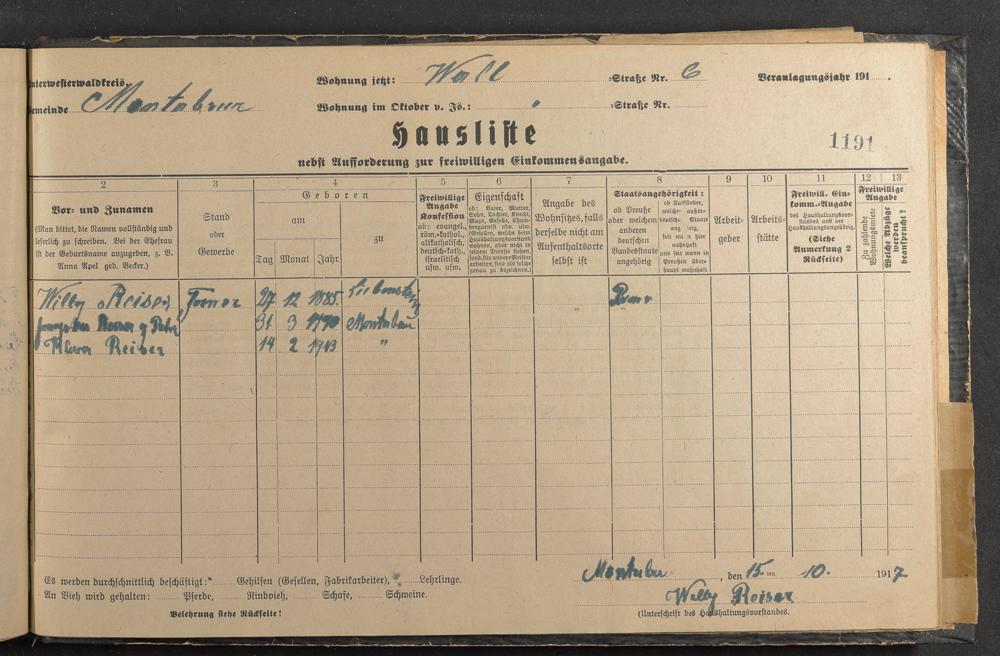 Haushaltsliste 1917/18, Sauertalstraße bis Werbhausgasse sowie Mühlen