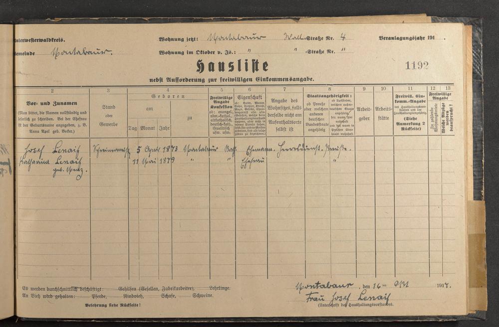 Haushaltsliste 1917/18, Sauertalstraße bis Werbhausgasse sowie Mühlen