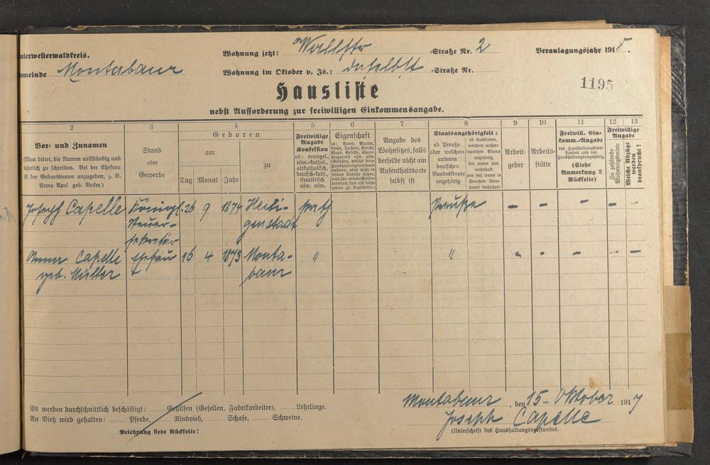 Haushaltsliste 1917/18, Sauertalstraße bis Werbhausgasse sowie Mühlen
