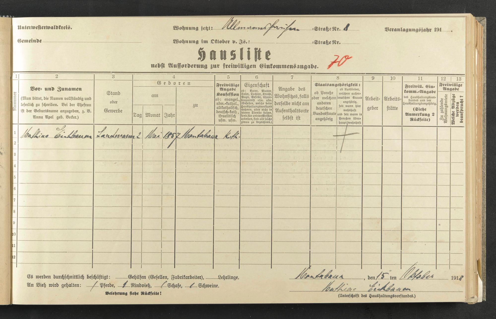 Haushaltsliste 1918, Kaiserstraße bis Markt