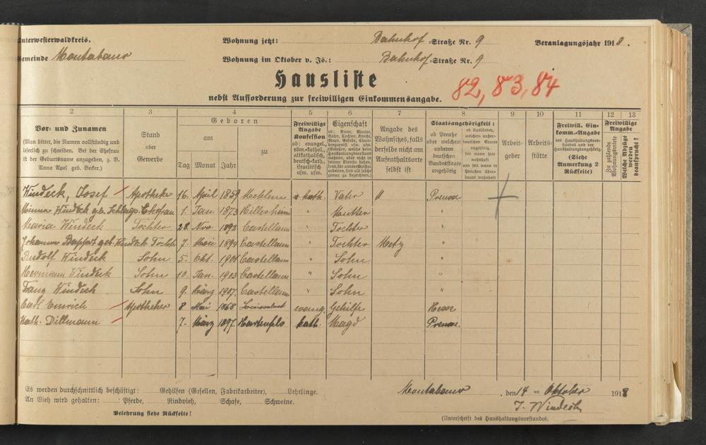 Windeck, Josef Windeck, Wilhelmine, geb. Schlags Windeck, Maria Windeck, Johanna Windeck, Rudolf Windeck, Hermann Windeck, Franz Emrich, Karl Dillmann, Kath.