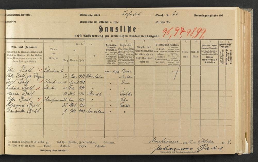 Bahl, Joh Bahl, Kath geb. Wagner Bahl, Josef Bahl, Julius Bahl, Maria Bahl, Peter Bahl, Hildegard Bahl, Franziska