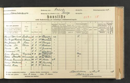 Haushaltsliste 1918, Abt. 4, A 288, Albertstraße bis Klostergasse Haushaltsliste 1918, Albertstraße bis Burgstraße Schloß