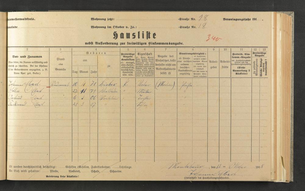 Haushaltsliste 1918, Abt. 4, A 288, Albertstraße bis Klostergasse