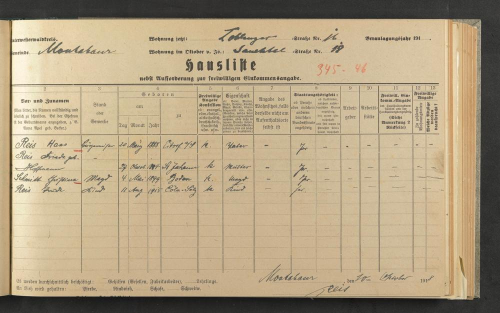 Haushaltsliste 1918, Kaiserstraße bis Markt