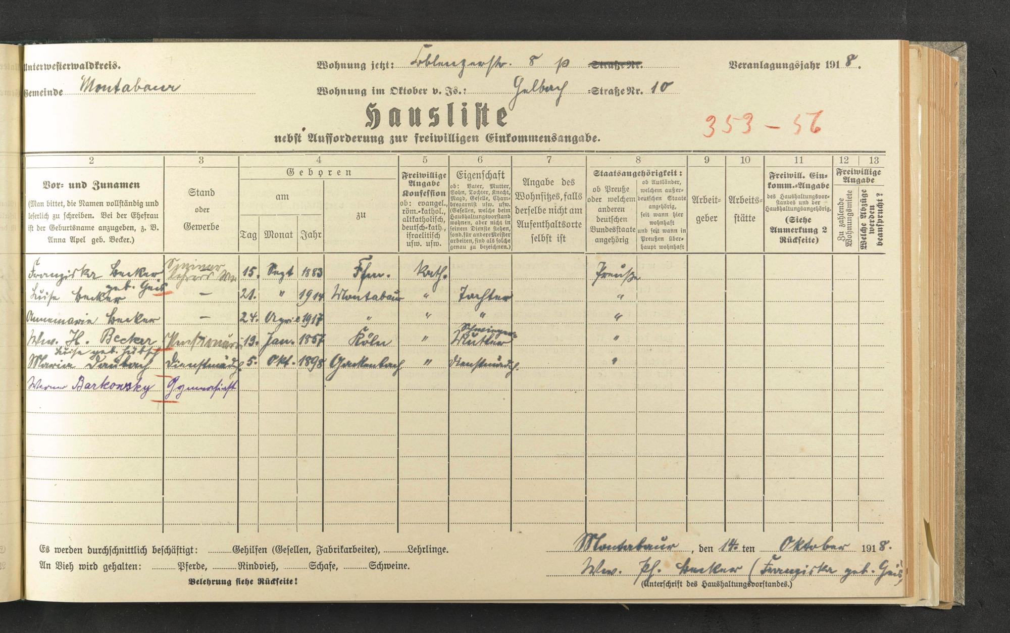 Becker, Franziska, geb. Geis Becker, Luise Becker, Annamaria Becker, Luise, geb. Hübsch Daubach, Maria Barkonsky, Werner