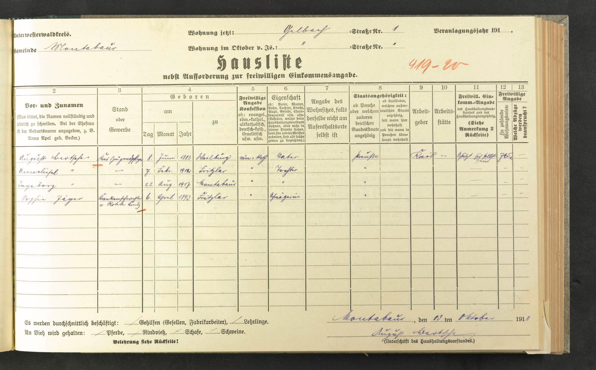 Haushaltsliste 1918, Kaiserstraße bis Markt