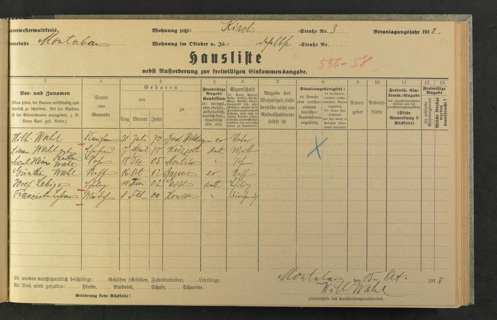 Wahl, Anna geb. Beutten [?] [Leutten]