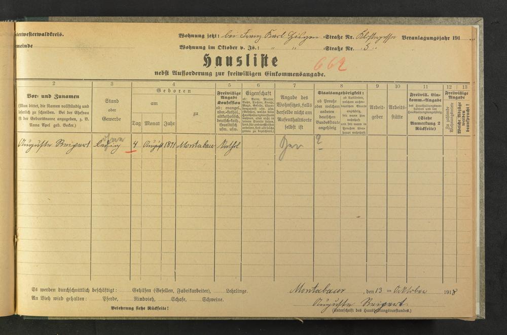 Haushaltsliste 1918, Kaiserstraße bis Markt