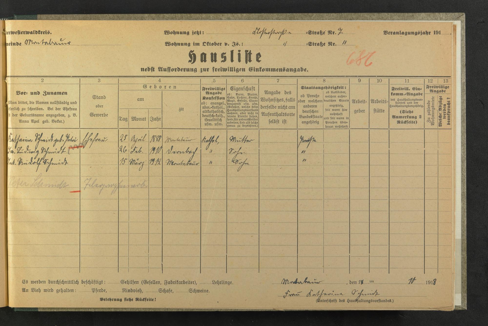 Haushaltsliste 1918, Kaiserstraße bis Markt