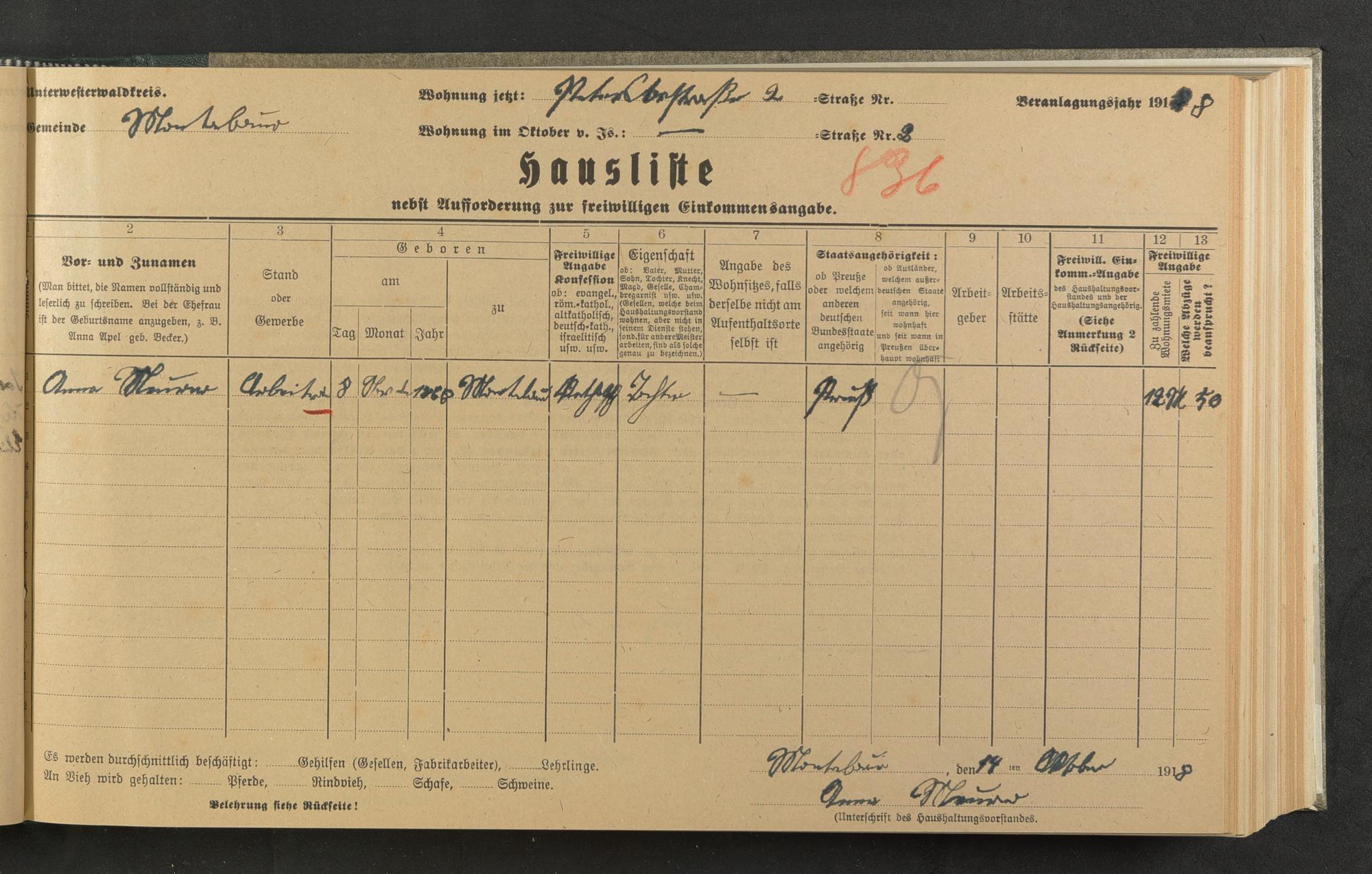 Haushaltsliste 1918, Abt. 4, A 289, Großer Markt bis Marauer Mühle