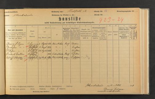 Haushaltsliste 1918, Abt. 4, A 289, Großer Markt bis Marauer Mühle